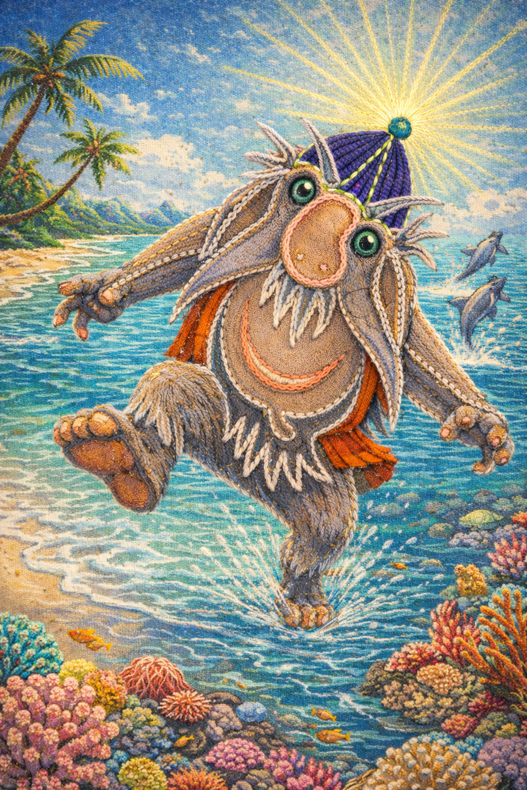 Zijn oma heeft het hoedje voor hem gehaakt. Toen ze de lap, die nog afgestikt moest worden, in de vensterbank had gelegd, was er iets vreemds gaande. Zo herinnerde zijn oma het in ieder geval. Het lapje stof was een dag later namelijk nat en een tikje verfrommeld. Ze heeft zich suf gepiekerd over wat er gebeurd zou kunnen zijn en berustte uiteindelijk in de gedachte dat er per ongeluk een glas water overheen gegaan moest zijn. (…)